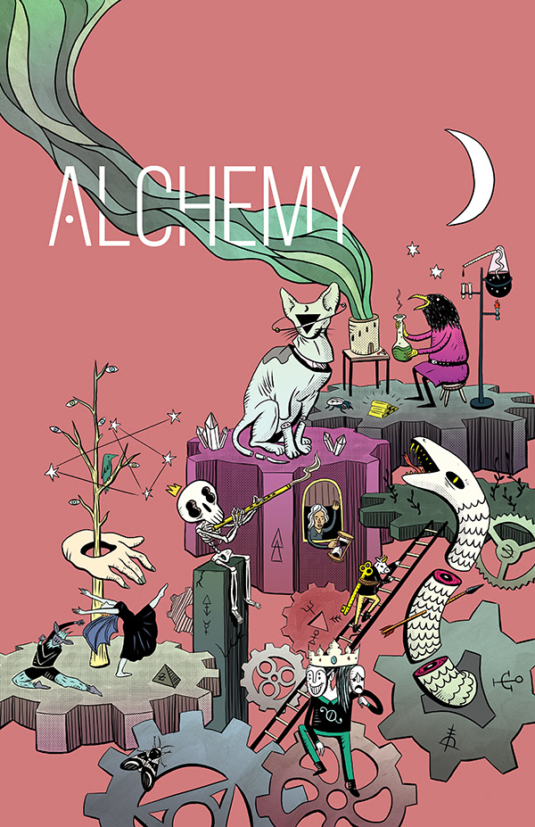 Event illustrations for University of Calgary's Alchemy Festival within the Faculty of Performing Arts.