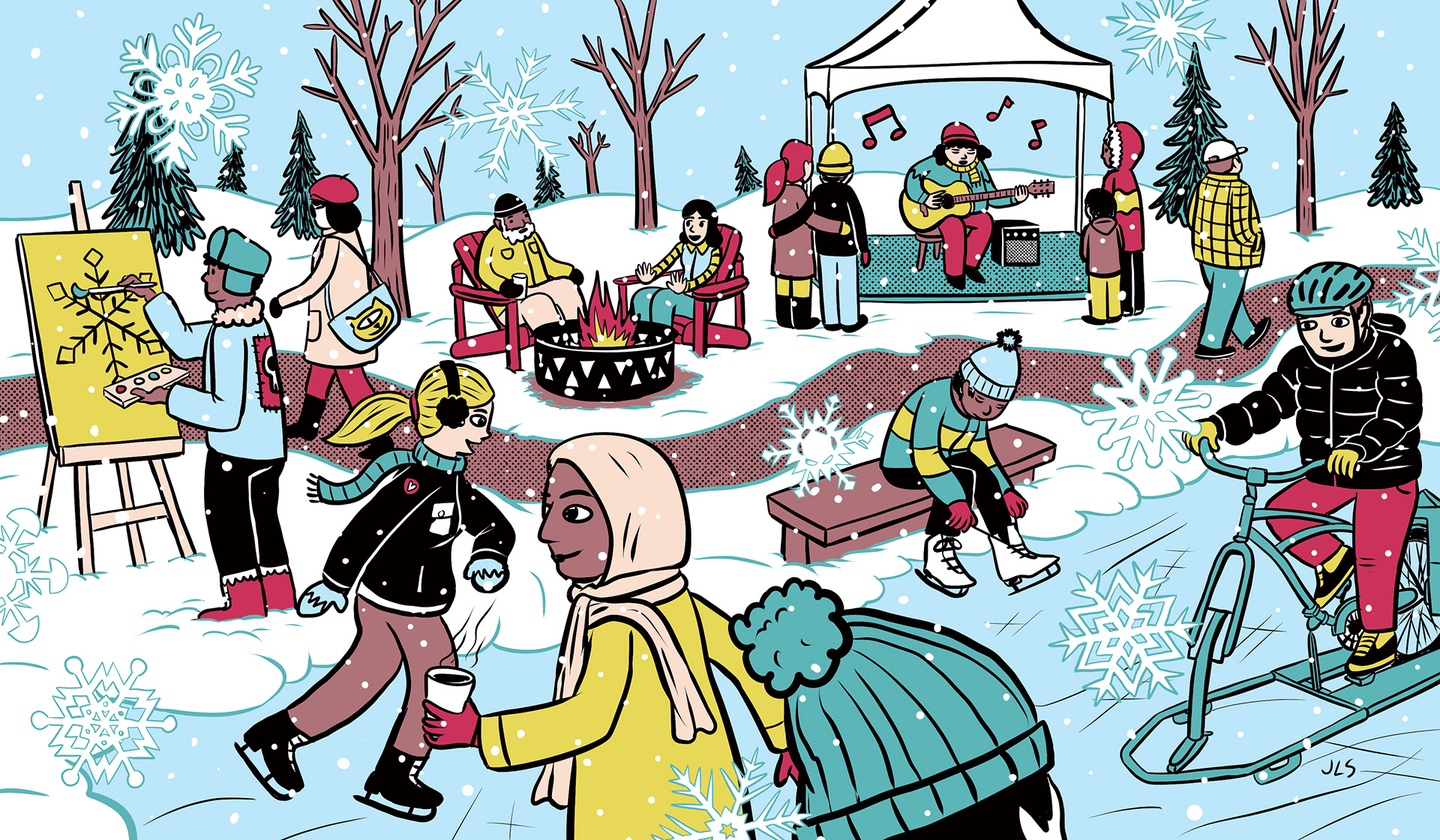 Editorial spread for the December issue of Avenue Magazine for an article about the different winter activities in the city.