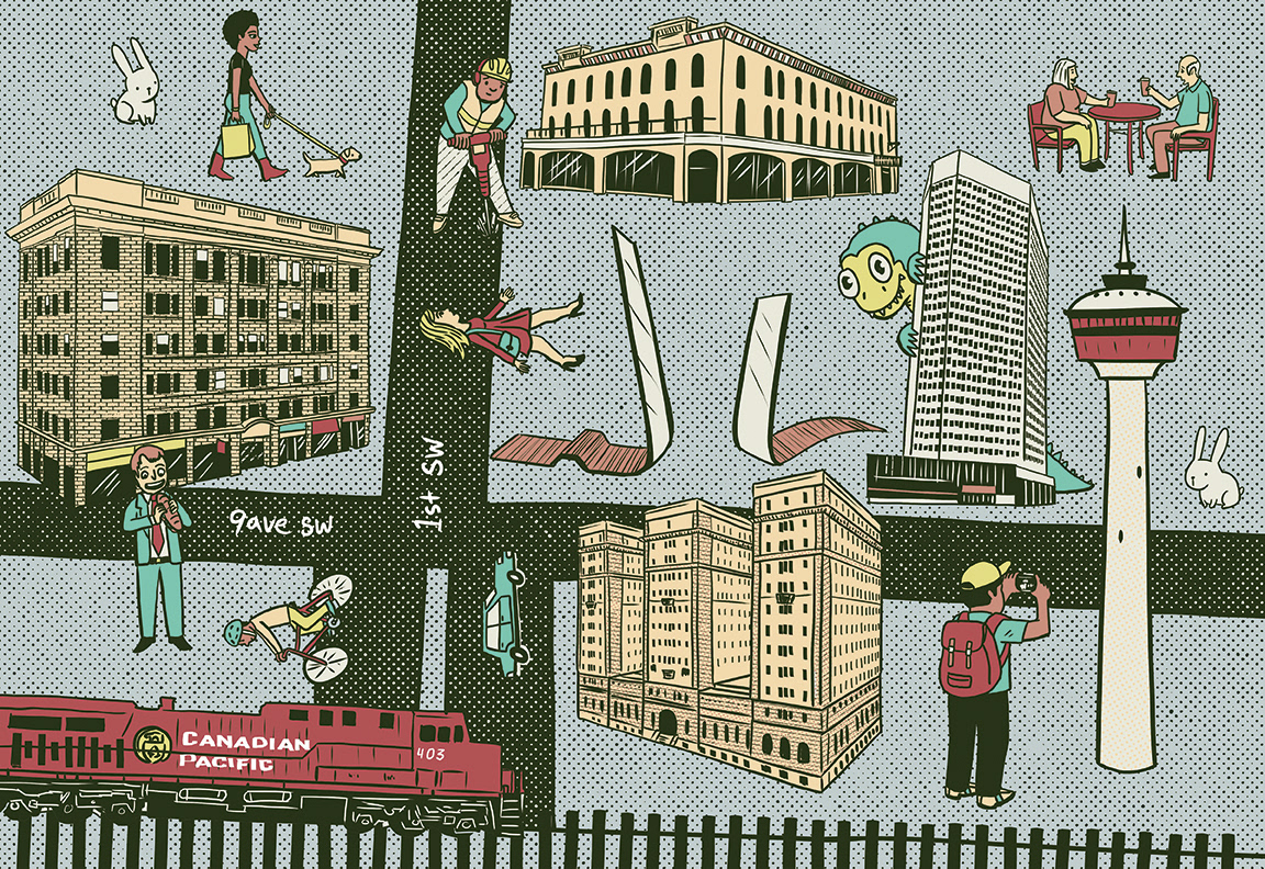 Downtown Calgary 9th Ave map illustration as part of illustrated map series for Avenue Magazine.