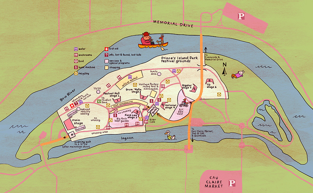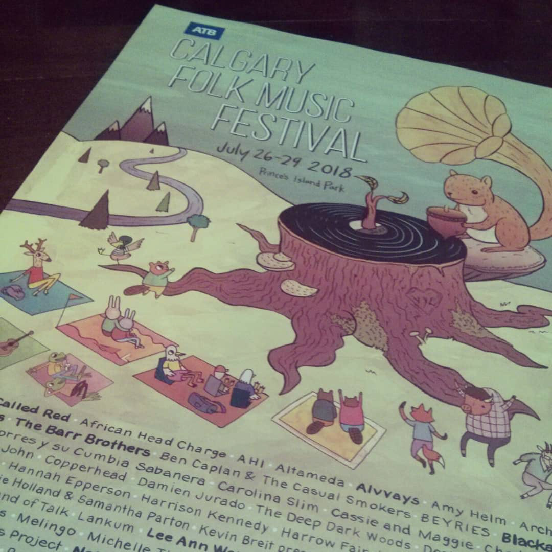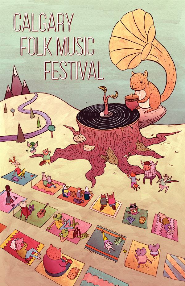 Promotional illustrations for the 39th annual Calgary Folk Music Festival.