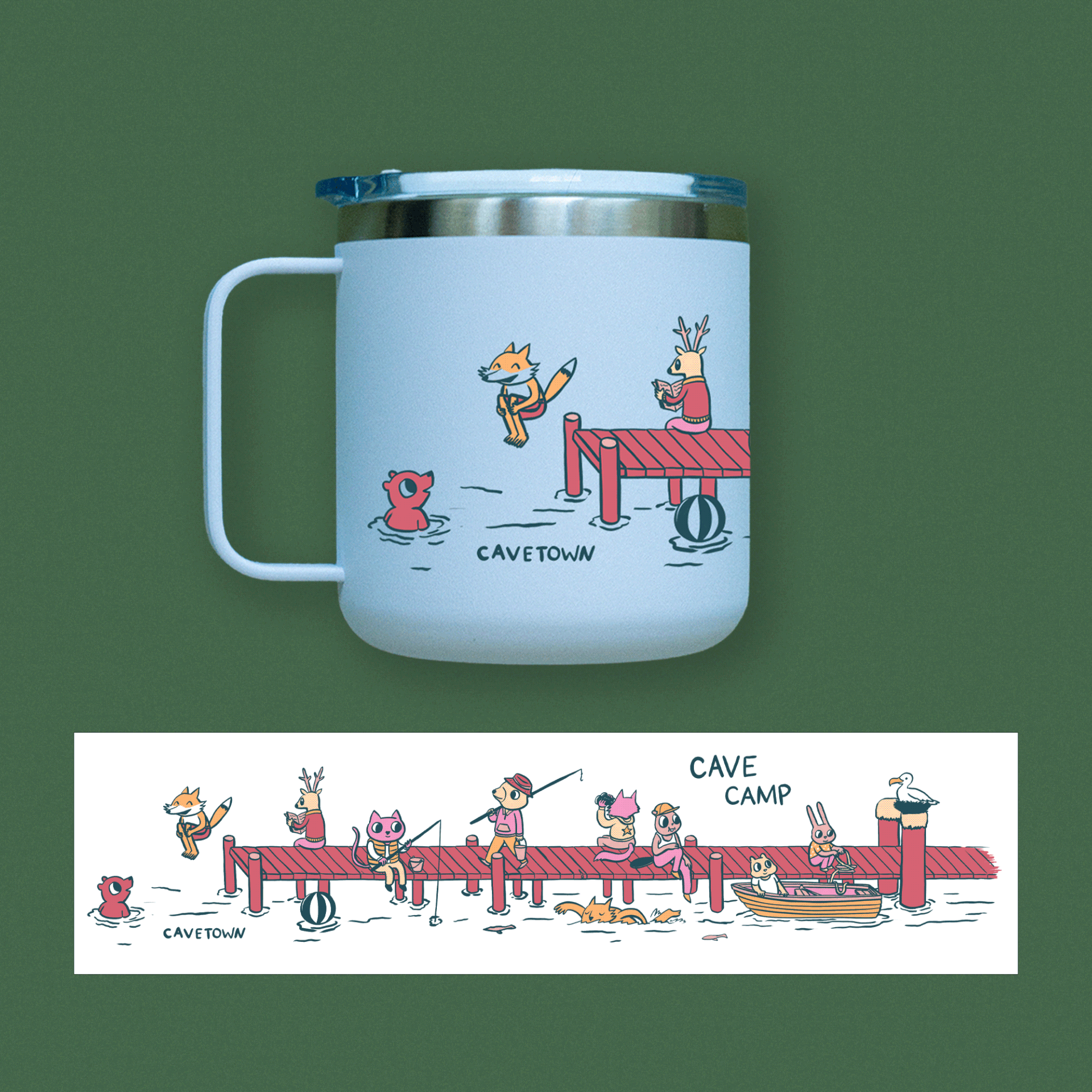Travel mug design for Cavetown as part of Cave Camp line of merch.