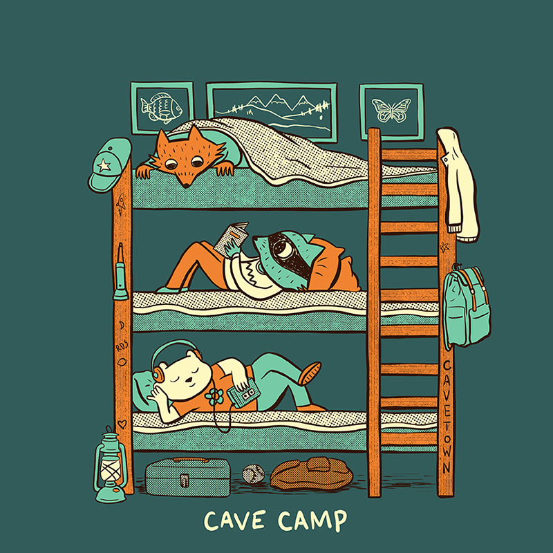 Triple bunk sweater design for Cavetown as part of Cave Camp line of merch.