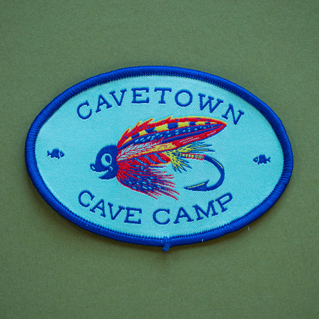 Fly fishing patch design for Cavetown as part of Cave Camp line of merch.