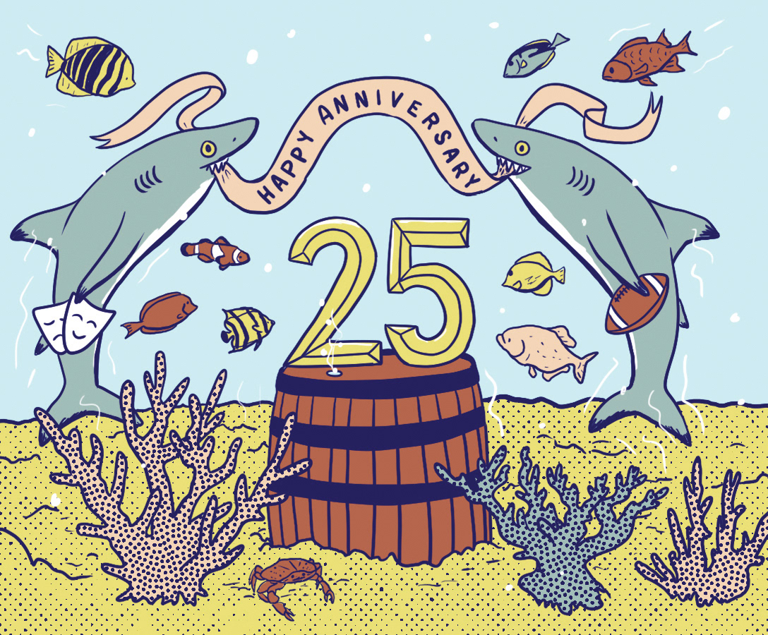 Illustration celebrating 25 years of various Cincinnati institutions for Cincinnati Magazine.