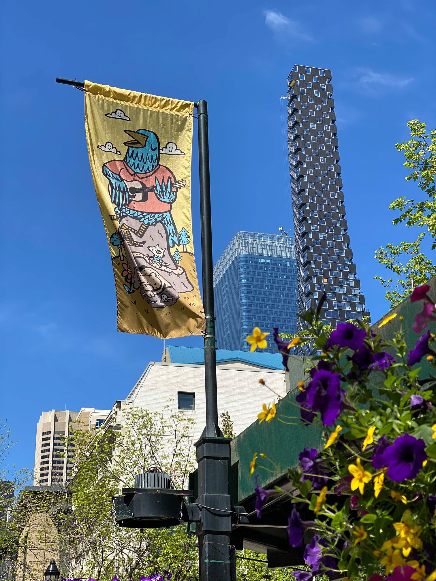 Bird Banner I was selected to be the 2021 Centre City Banner artist for the City of Calgary, my series of instrument playing animals was featured throughout the downtown area of Calgary.