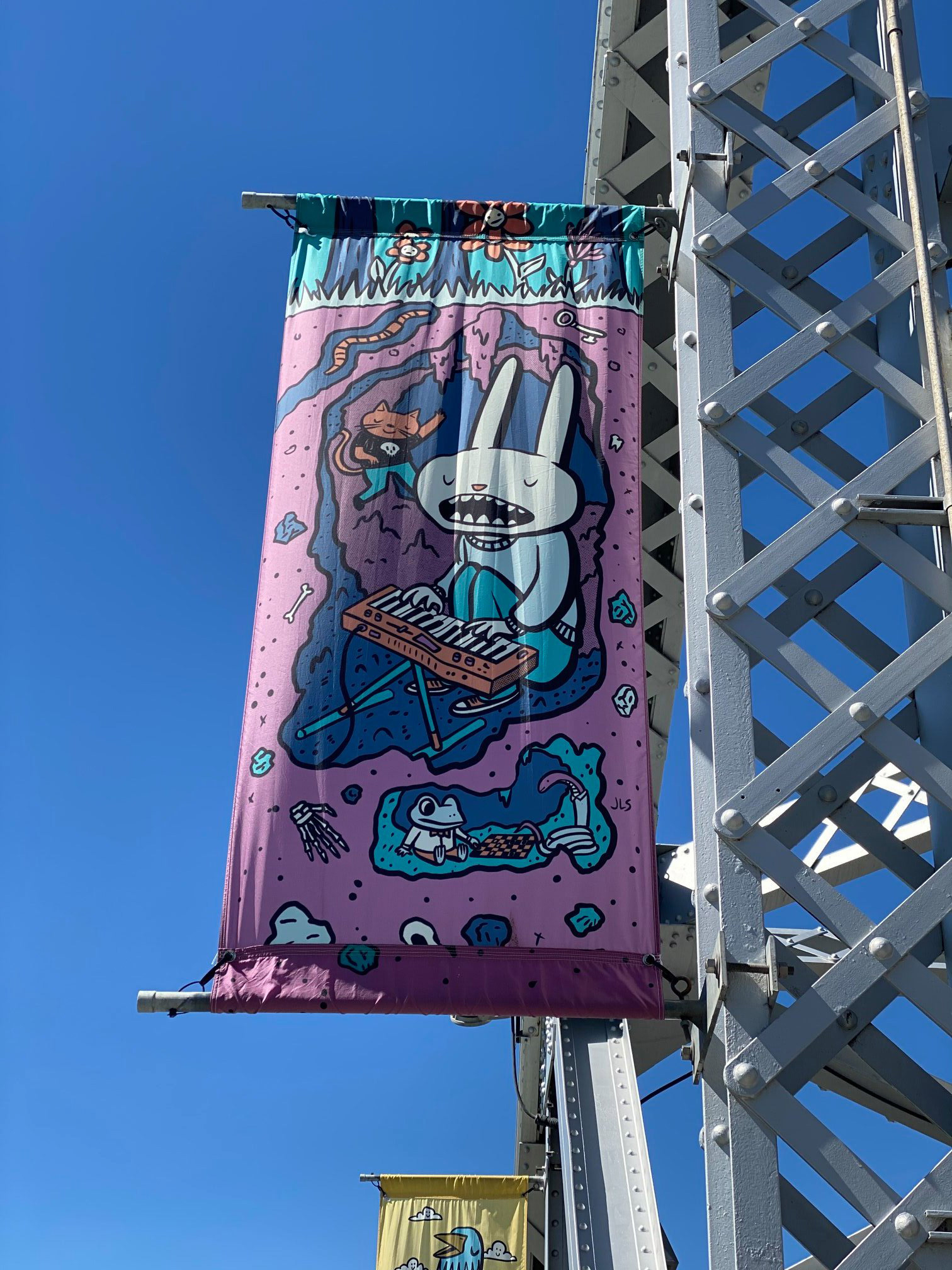 Rabbit Banner I was selected to be the 2021 Centre City Banner artist for the City of Calgary, my series of instrument playing animals was featured throughout the downtown area of Calgary.