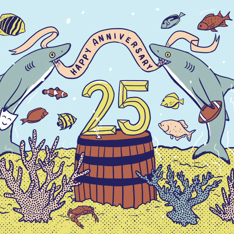 Illustration celebrating 25 years of various Cincinnati institutions for Cincinnati Magazine.