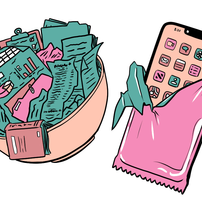 Lead illustration for a feature in the Globe and Mail article "Instead of fighting back against our many distractions, these experts say we’re better off accepting them".