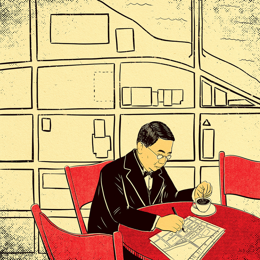 Large illustration instalment of George Ho Lem created for Lougheed House's "We Were Here: Stories From Early Chinatown" exhibit.