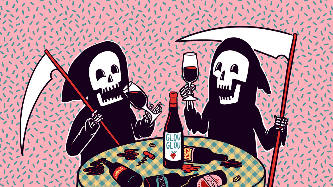 Created for Punch article "You Can Call It Natural Wine’s Goth Phase" about the death of glou glou wine.