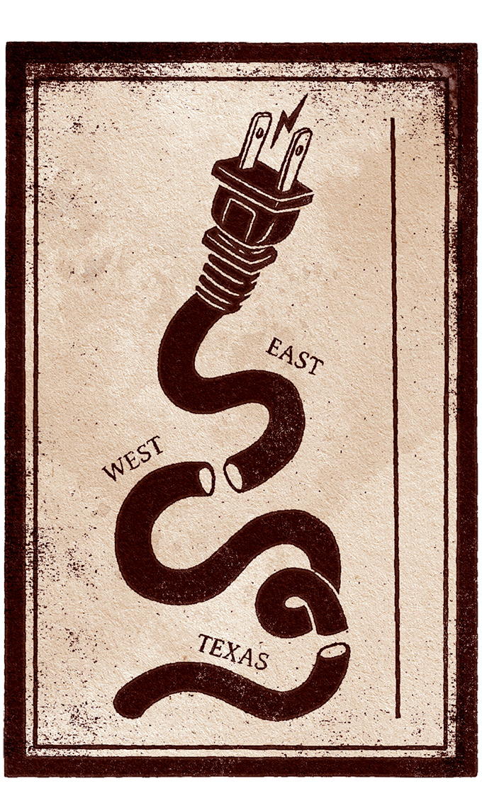 Feature illustration for Sierra Magazine article Grid Lock about the outdated US electrical system potentially being combined on to one national macrogrid.