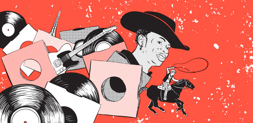 Feature illustration for editorial piece about Twang, featuring a portrait of Lil Nas X, for the music issue of The Believer Magazine.