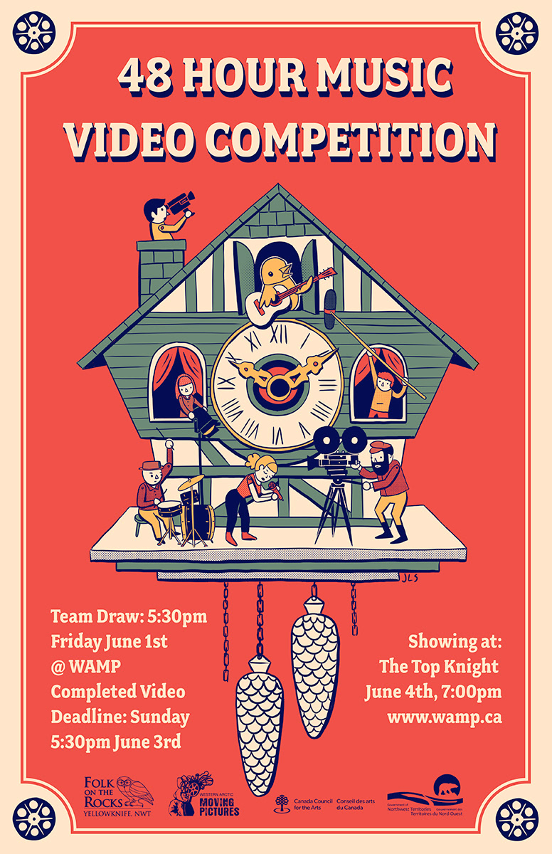 Event poster for WAMP's 48 Hour Music Video Competition.